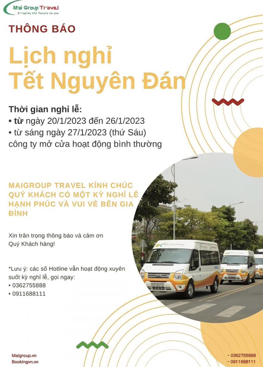 Maigroup Travel xin được gửi tới quý khách về lịch nghỉ Tết Nguyên Đán 2023 như sau: